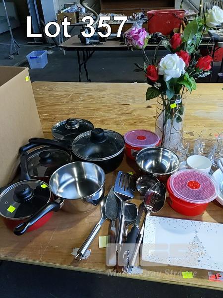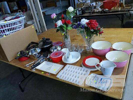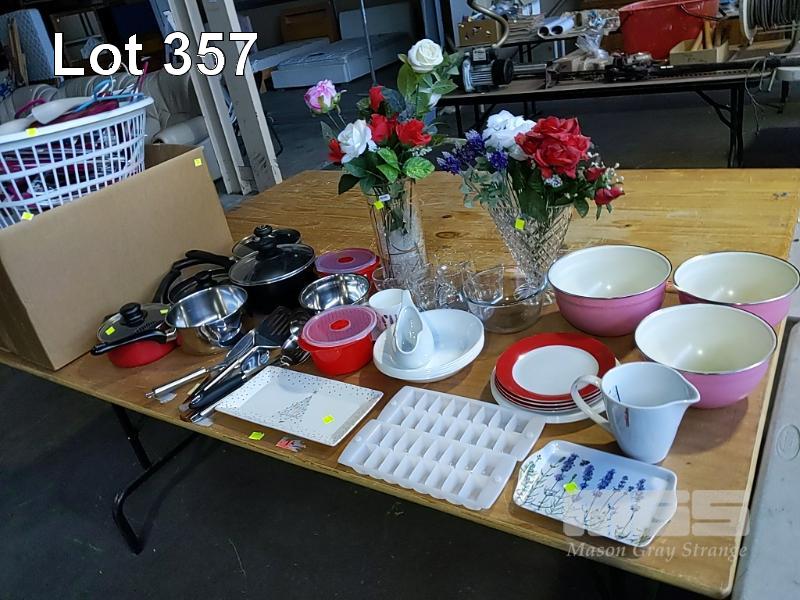 COOKWARE, VASES, HOUSEHOLD LINEN, COAT HANGERS ETC.
