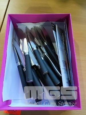 TEFAL AND WILTSHIRE KITCHEN KNIVES (15 ITEMS). ALL NEW AND/UNUSED UNUSED