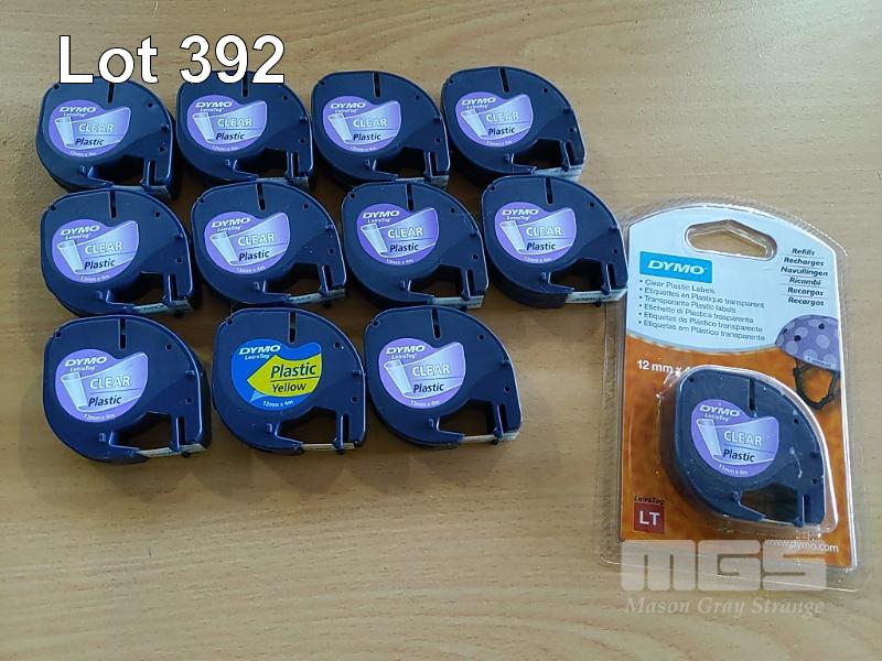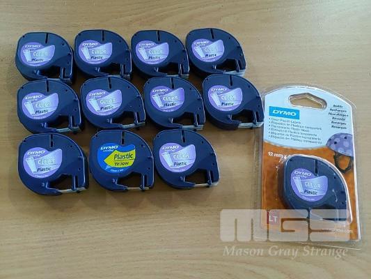 12 x DYMO "LETRATAG" LABEL CARTRIDGES - PLASTIC CLEAR & YELLOW (12mm x 4m)