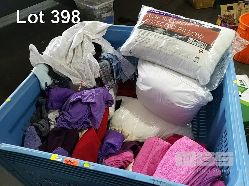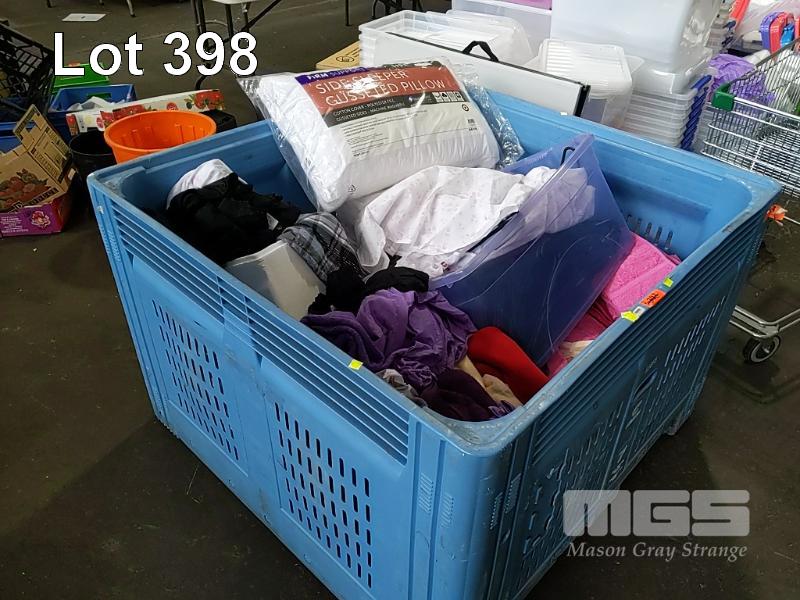 QUANTITY OF NEW PILLOWS, NEW TOWELS, NEW NIGHTIES AND OTHER GARMENTS, BLANKETS, COAT HANGERS AND MORE. (1 x CRATE NOT INCLUDED)