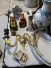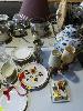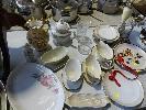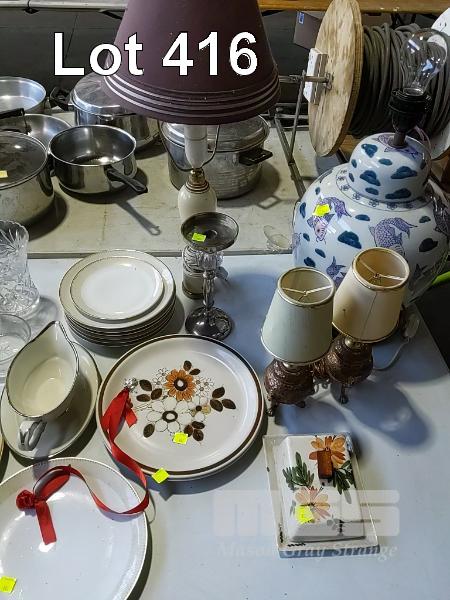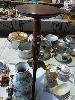 TABLE LAMPS, VASES, CLAW FOOTED PEDESTAL TABLE, VINTAGE LIGHT FITTINGS, FIGURINES AND ASSORTED TABLEWARE ETC (1 x TABLE)
