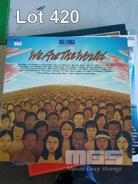 VYNL RECORDS. LP & 45s APPROX 50 ITEMS INCLUDING "WE ARE THE WORLD - USA AFRICA" 12 INCH SINGLE.