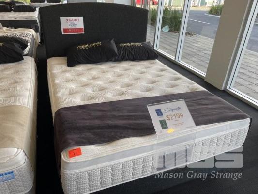 QUEEN SIZE ENSEMBLE, "REGAL POCKET SPRING, EXQUISITE FIRM" (RRP $2199, BASE & HEADBOARD)