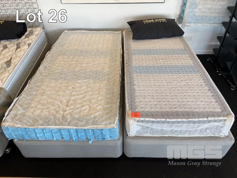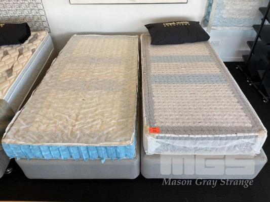 2 x SINGLE BED BASES & 2 x SINGLE "DISPLAY MATTRESSES"