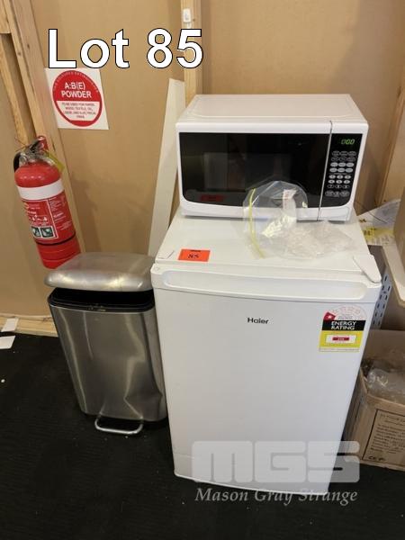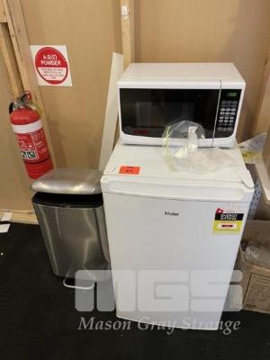 HAIER BAR FRIDGE, MICROWAVE & BIN