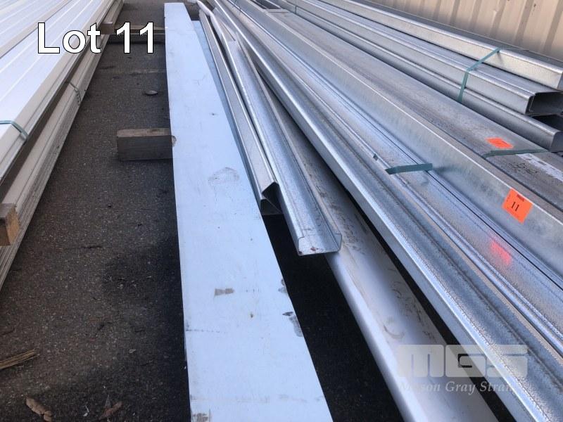 5 x 100mm GALV C PURLINS, 8.5m 4 x 100mm GALV C PURLINS, 4m 2 x TIMBER FASCIA BOARDS & 20 x GALV W PURLINS, 8.5m