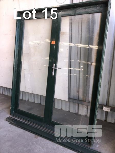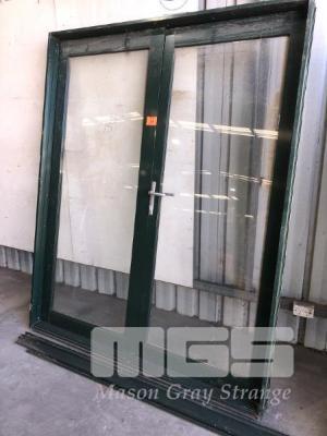 ALUMINIUM / GLASS HINGED DOR SET . WITH FRAME . DARK GREE. 2085 X 1700. MM.