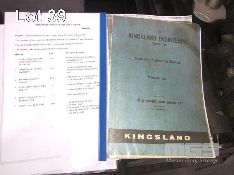 KINGSLAND MECHANICAL PUNCH & SHEAR MOD: J18 TYPE: 1 S/NO: 38879 WITH PUNCH TOOLING, JIGS & RACK 415V