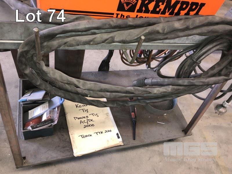 KEMPPI TIG WELDER MOD: MASTER AC/DC 2000 DIGITAL READOUT BOOKS, 240V ON CUSTOM TROLLEY WITH BOOKS.