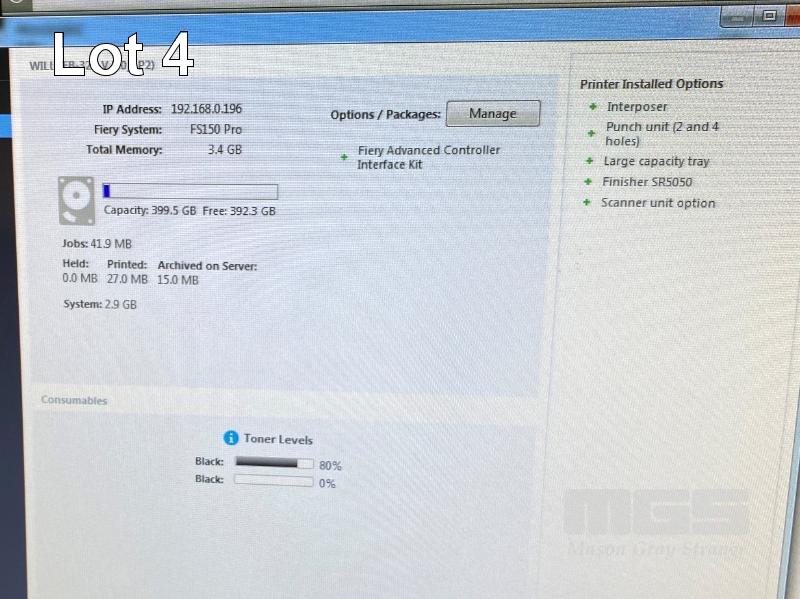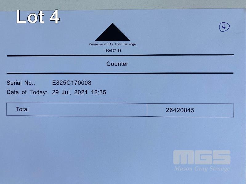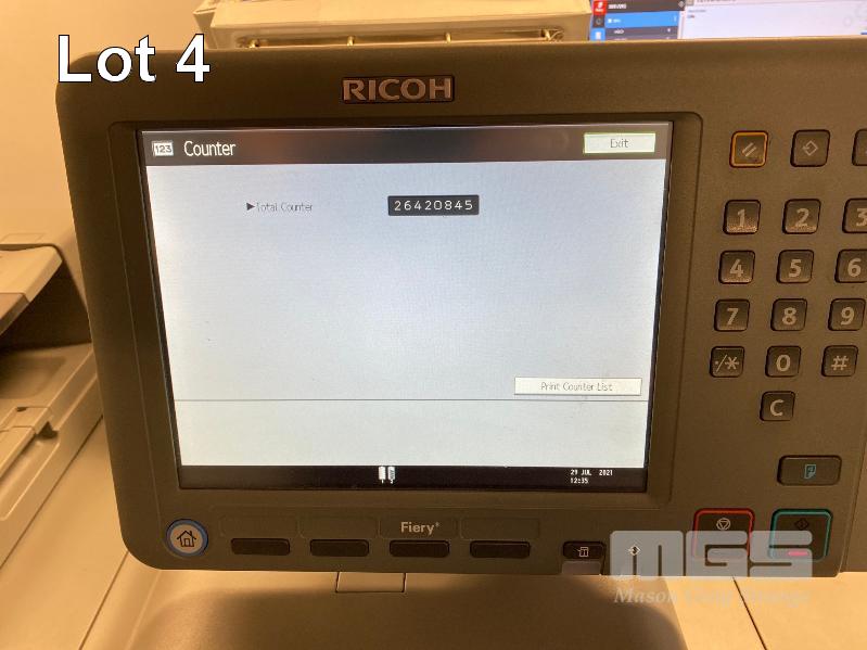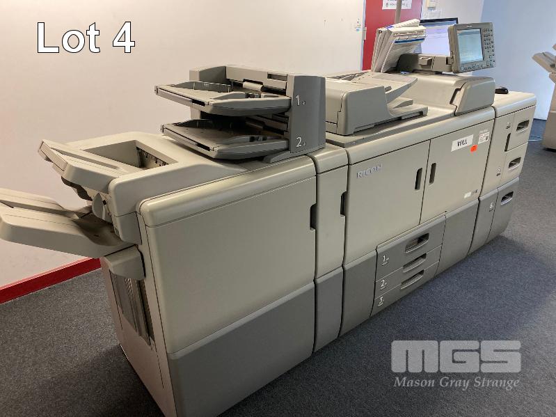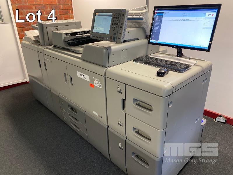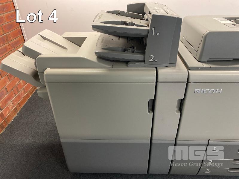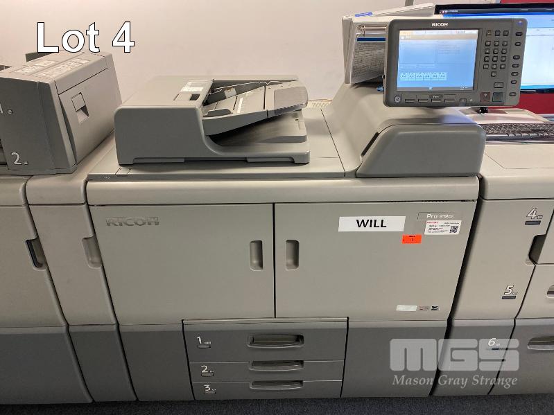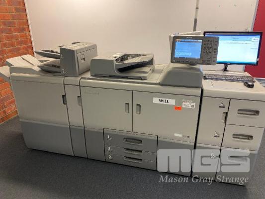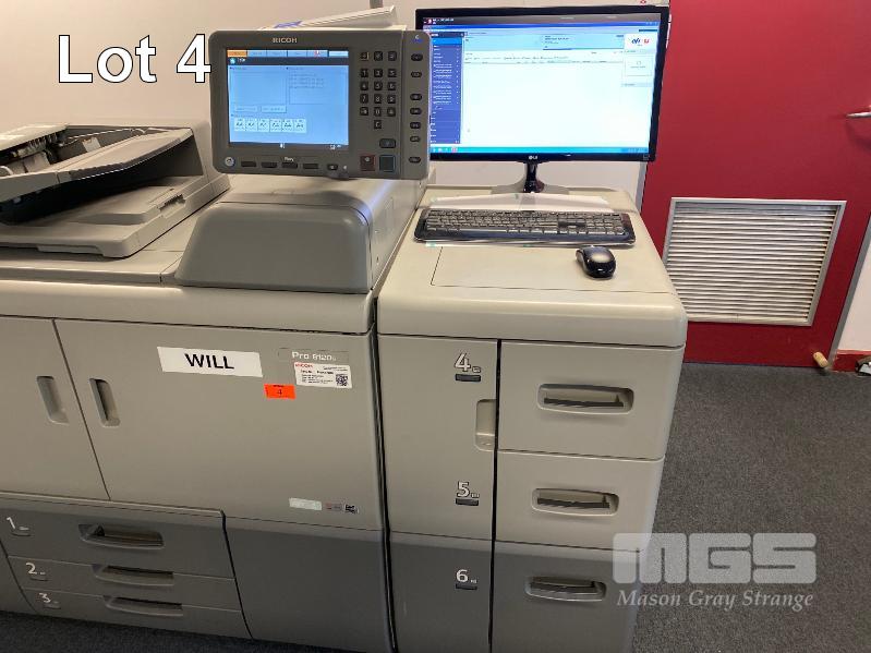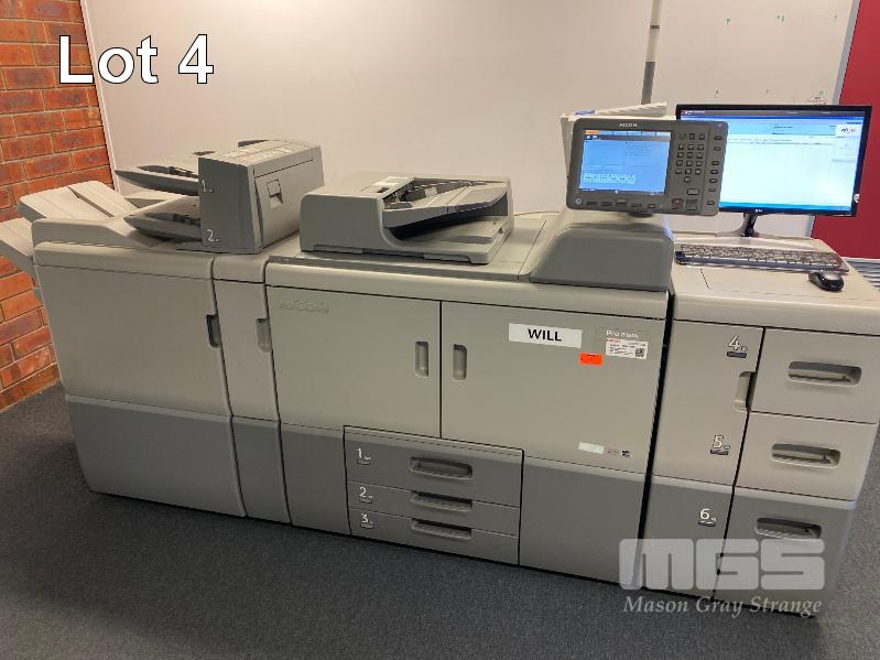 DIGITAL PRINTING PRESS, RICOH PRO 8120S B&W, FINISHER SR5050, LARGE CAPACITY TRAY, PUNCH UNIT 2 & 4 HOLES, INTERPOSER, 15AMP POWER, FIERY EB-32 PRINTER CONTROLLER, LCD MONITOR "WILL" APPROX COPY COUNT - 26,420,845 B&W (TEST PAGE ATTACHED) APPROX OVERALL DIMENSIONS - 260 x 135 x 95cm NOTES: ASSET LOCATED - SOUTH ROAD, EDWARDSTOWN SA INSPECTION & COLLECTION BY APPOINTMENT ONLY PURCHASER TO ARRANGE DECOMMISSIONING & COLLECTION BY 31/8/2021 S/N:E825C170008