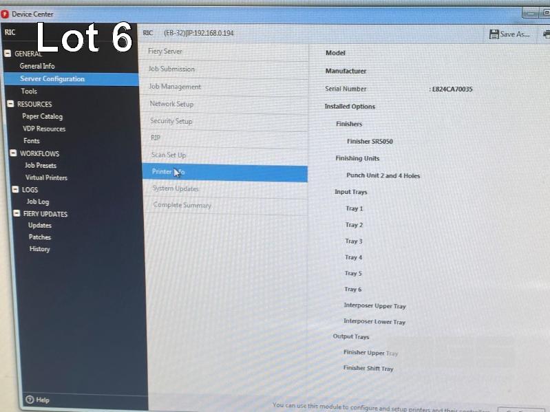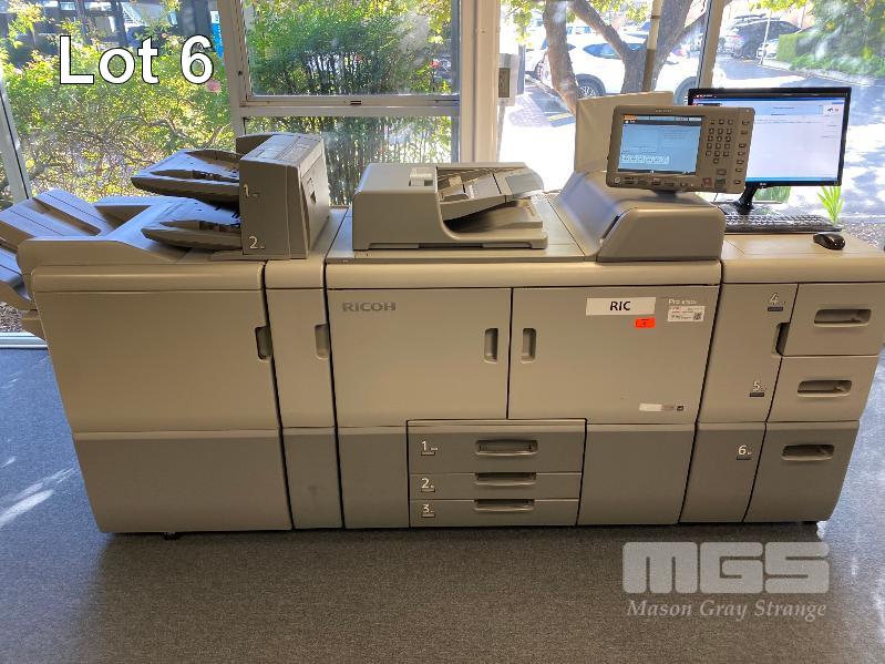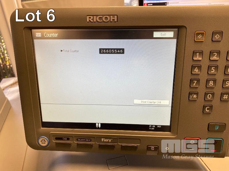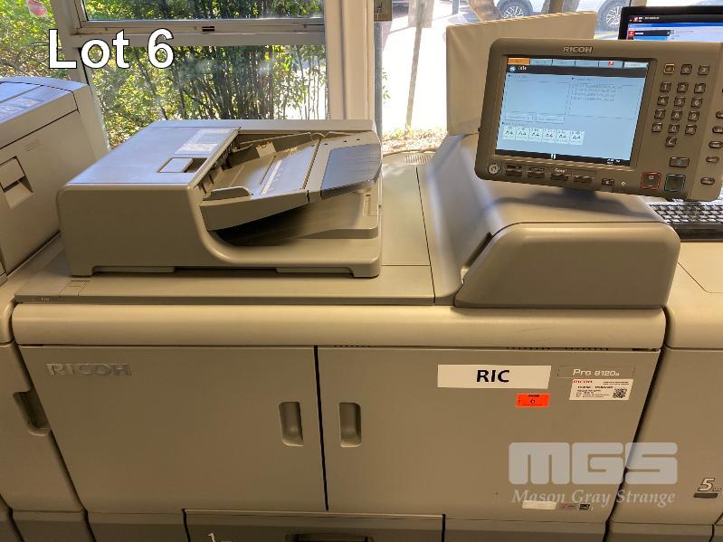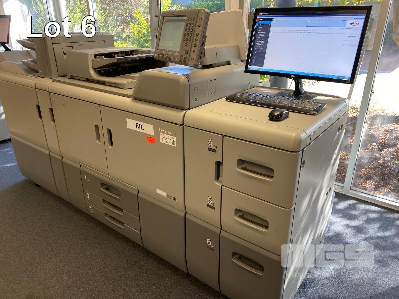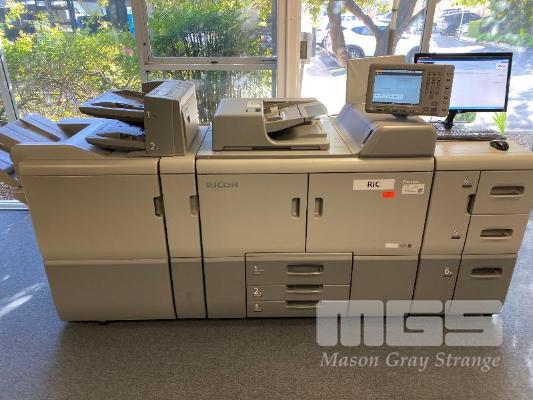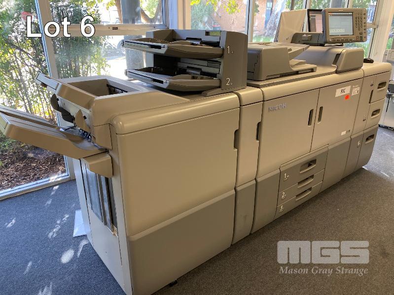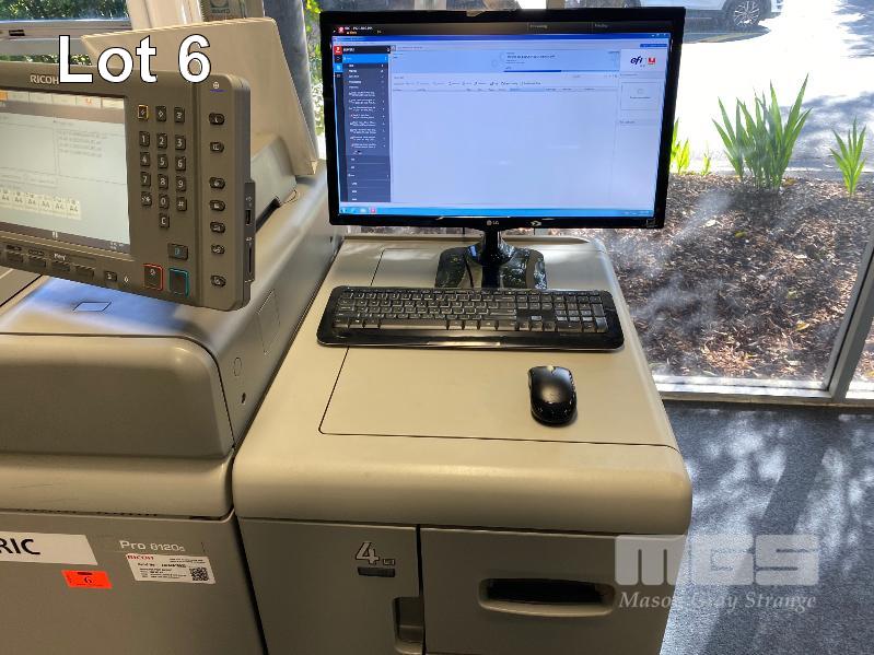 DIGITAL PRINTING PRESS, RICOH PRO 8120S B&W, FINISHER SR5050, LARGE CAPACITY TRAY, PUNCH UNIT 2 & 4 HOLES, INTERPOSER, 15AMP POWER, FIERY EB-32 PRINTER CONTROLLER, LCD MONITOR "RIC" APPROX COPY COUNT - 26,605,546 B&W (TEST PAGE ATTACHED) APPROX OVERALL DIMENSIONS - 260 x 135 x 95cm NOTES: ASSET LOCATED - SOUTH ROAD, EDWARDSTOWN SA INSPECTION & COLLECTION BY APPOINTMENT ONLY PURCHASER TO ARRANGE DECOMMISSIONING & COLLECTION BY 31/8/2021 S/N:E824CA70035