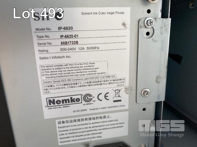 WIDE FORMAT PRINTER, SEIKO-I INFOTECH SII COLOUR PAINTER M-64s, MODEL IP-6620, 64-INCH SOLVENT INK PRINTER (NOTE: REQUIRES FLUSH, HAS NOT BEEN OPERATIONAL FOR 6 MONTHS) S/N:58B1733B