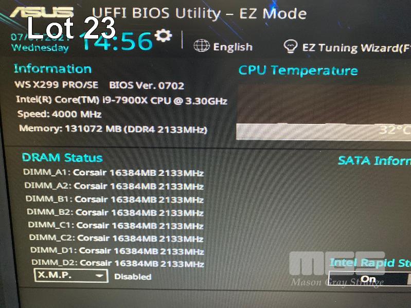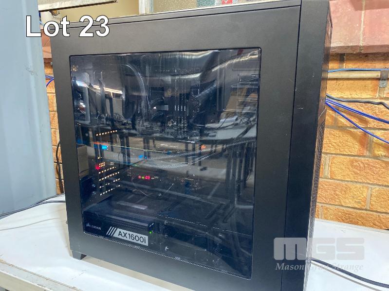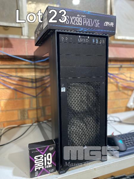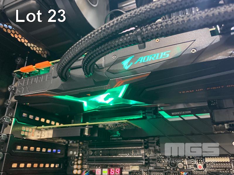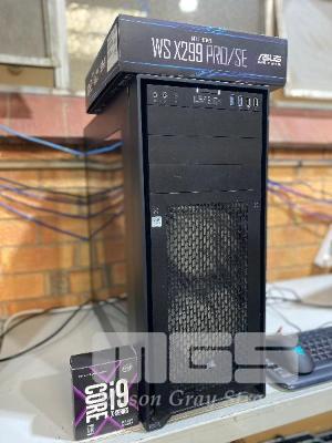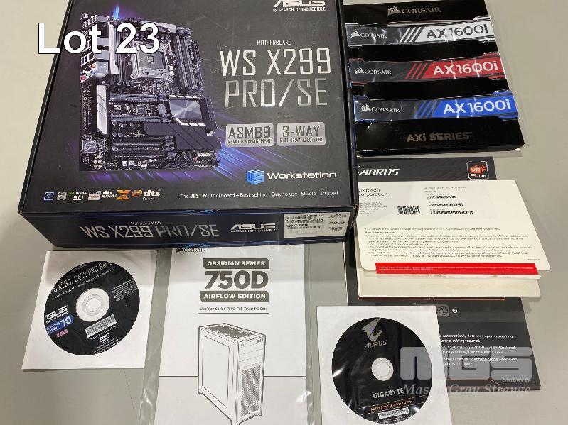 TOWER PC, CUSTOM BUILT WORKSTATION, CORSAIR 750D AIR FLOW EDITION CASE, CORE i9 7900X (7TH GEN) @ 3.2GHz, 128GB DDR4 RAM, 256GB NVMe M.2 SSD, 11GB AORUS GEFORCE GTX 1080 TI WATERFORCE XTREME EDITION VIDEO, INTEL ETHERNET CONVERGED NETWORK ADAPTER X550-T2, ASUS WS X299 PRO/SE MOTHERBOARD, CORSAIR LIQUID CPU COOLER, AX1600I 1600W PSU, WINDOWS 10 PRO INSTALLED W/ LICENSE, DVD, MICROSOFT KEYBOARD & RAZER DEATHADDER ELITE MOUSE RZ01-0201 S/N:L124214