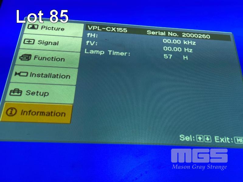 PROJECTOR, SONY VPL-CX155 3LCD, 3,500 LUMENS, 57 HOURS SHOWING WITH REMOTE S/N:2000260