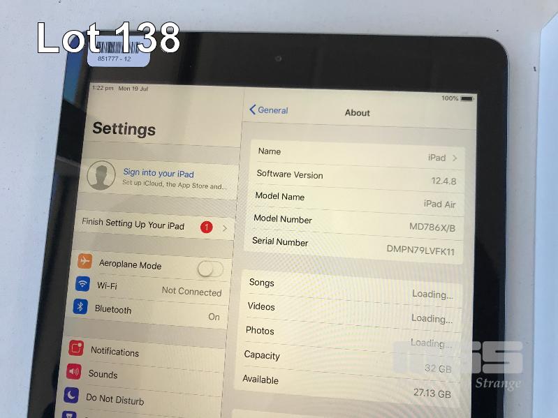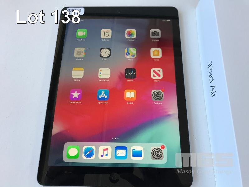 APPLE iPAD AIR, 32GB, Wi-Fi, SPACE GREY, MODEL A1474 WITH CABLE, CHARGER & COVER S/N:DMPN79LVFK11