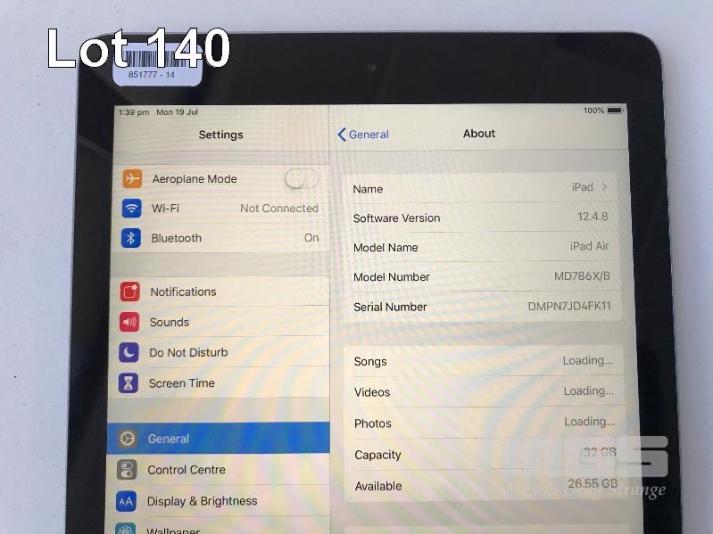 APPLE iPAD AIR, 32GB, Wi-Fi, SPACE GREY, MODEL A1474 WITH CABLE, CHARGER & COVER S/N:DMPN7JD4FK11