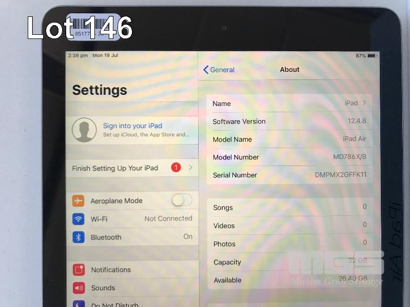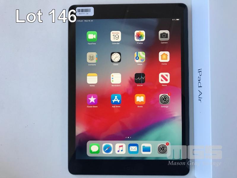 APPLE iPAD AIR, 32GB, Wi-Fi, SPACE GREY, MODEL A1474 WITH CABLE, CHARGER & COVER S/N:DMPMX2GFFK11