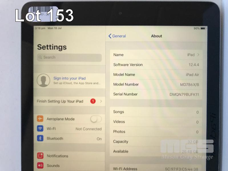 APPLE iPAD AIR, 32GB, Wi-Fi, SPACE GREY, MODEL A1474 WITH CABLE, CHARGER & COVER S/N:DMQN79BUFK11