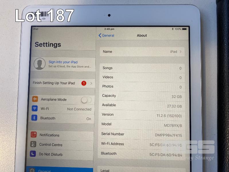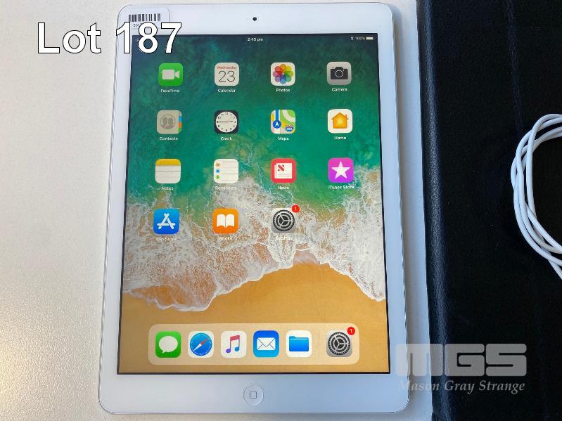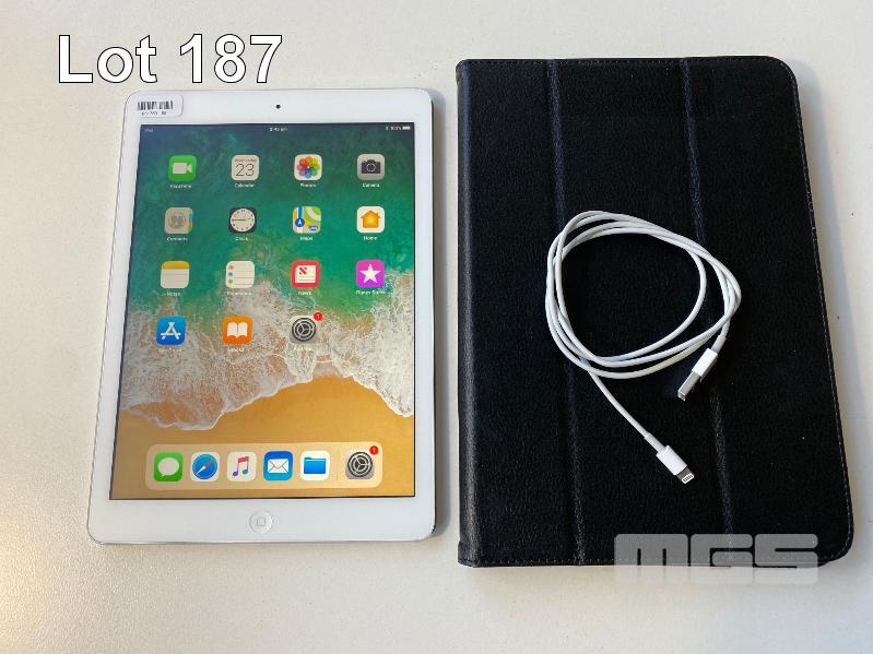 APPLE iPAD AIR, 32GB, Wi-Fi, SILVER, MODEL A1474 WITH COVER (WITH CABLE, NO CHARGER) S/N:DMPP9047FK15