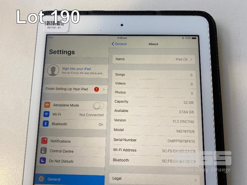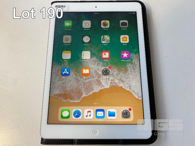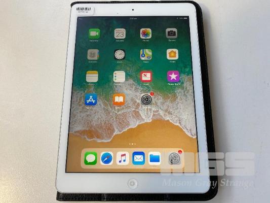 APPLE iPAD AIR, 32GB, Wi-Fi, SILVER, MODEL A1474 WITH COVER (NO CHARGER, NO CABLE) S/N:DMPP907BFK15