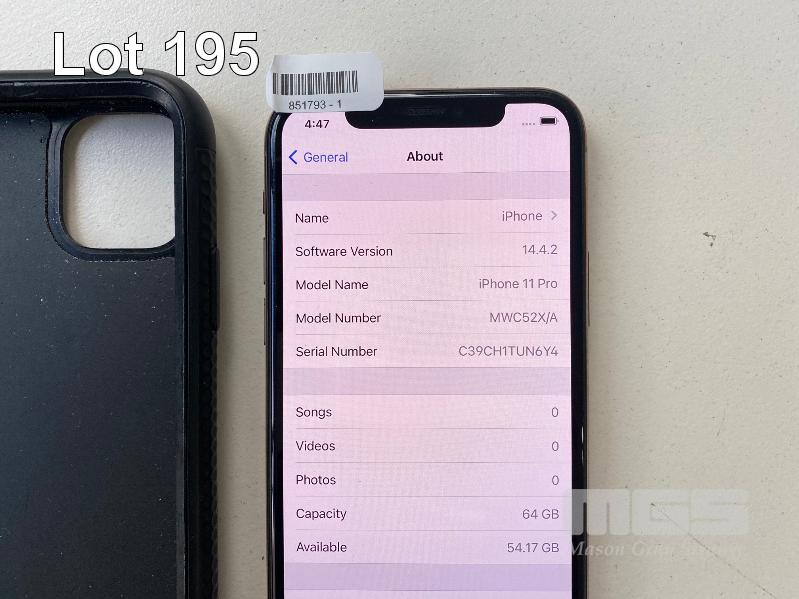 APPLE iPHONE 11 PRO, 64GB, GOLD, MODEL MWC52X/A WITH CASE (NO CHARGER, NO CABLE) S/N:C39CH1TUN6Y4