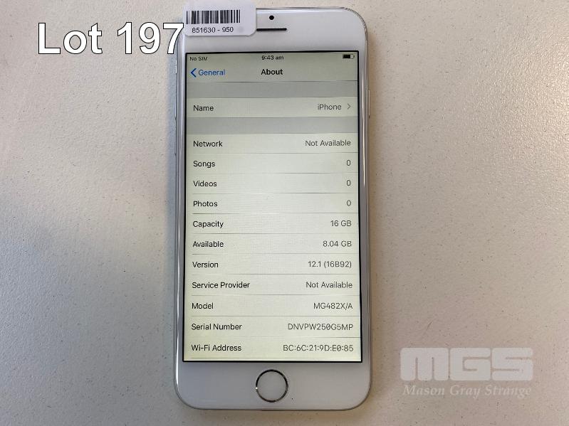 APPLE iPHONE 6, 16GB, SILVER, MODEL A1586 (NO CHARGER, NO CABLE) S/N:DNVPW250G5MP