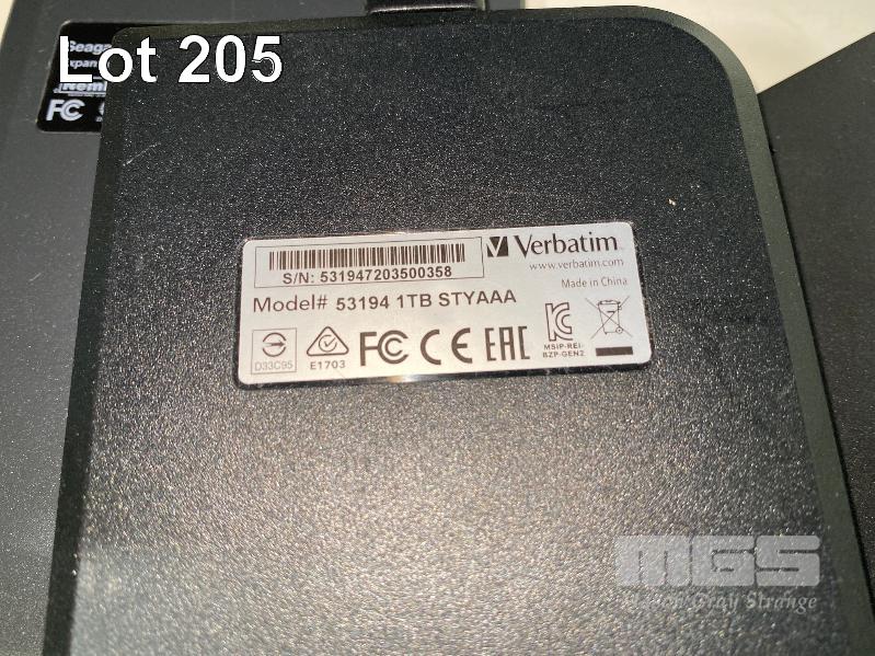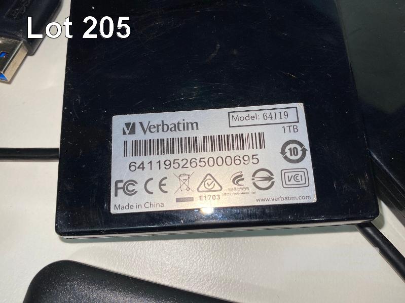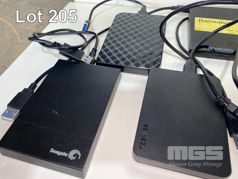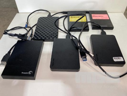 2 x TOSHIBA 1TB PORTABLE USB 3.0 HARD DRIVES, 1 x SEAGATE 1TB PORTABLE USB 3.0 HARD DRIVE, 1 x VERBATIM 1TB PORTABLE USB 3.0 HARD DRIVE, 1 x VERBATIM 1TB PORTABLE USB 2.0 HARD DRIVE, 1 x VERBATIM 500GB PORTABLE USB 2.0 HARD DRIVE