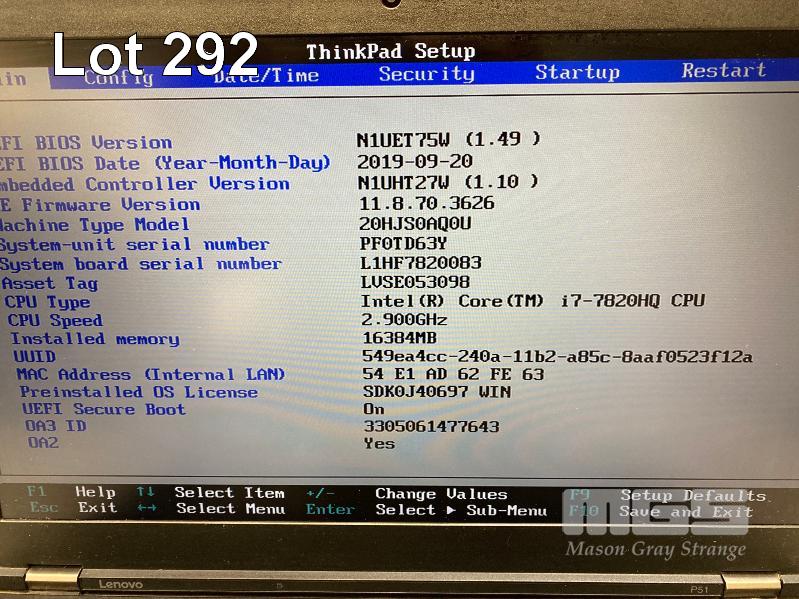 LAPTOP, LENOVO THINKPAD P51 MOBILE WORKSTATION (20HJS0AQ0U), CORE i7 7820HQ (7TH GEN) @ 2.9GHz, 16GB DDR4 RAM, 512GB NVMe M.2 SSD, 15.6" WIDESCREEN (1920x1080), 4GB NVIDIA QUADRO M2200 VIDEO, Wi-Fi, BLUETOOTH, WINDOWS 10 PRO INSTALLED & POWER SUPPLY S/N:PF0TD63Y