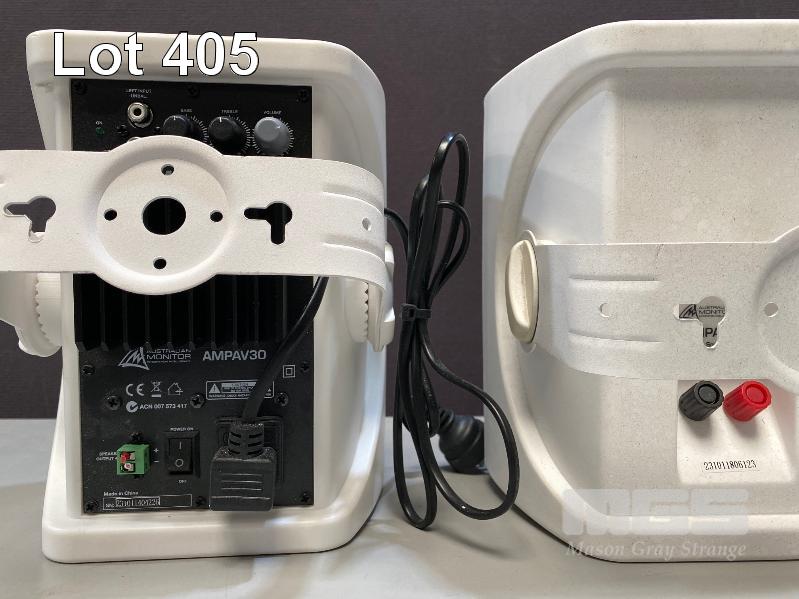 AUSTRALIAN MONITOR AMPAV30 POWERED & PASSIVE SPEAKERS, 30W WITH BRACKETS & POWER CABLE ONLY