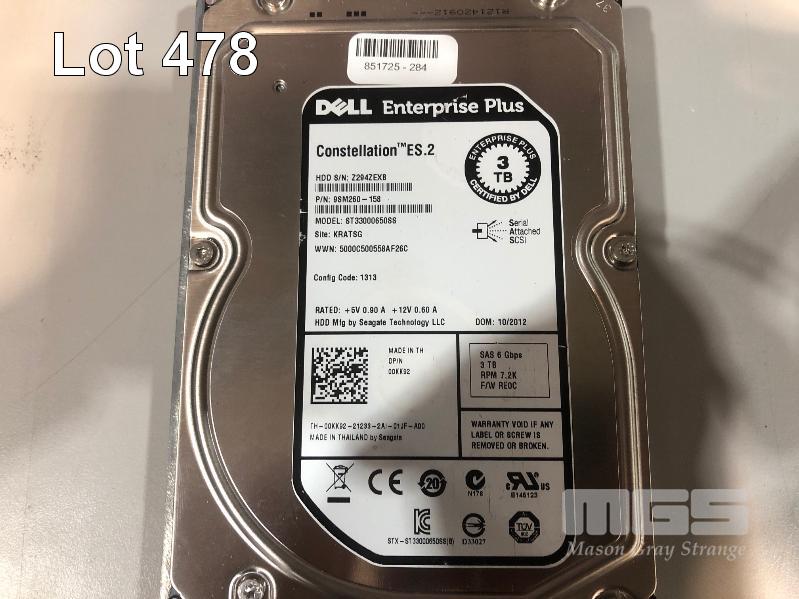 6 x DELL 3TB SAS HARD DRIVES, 3.5" WITH CADDIES