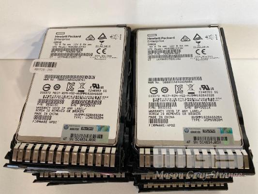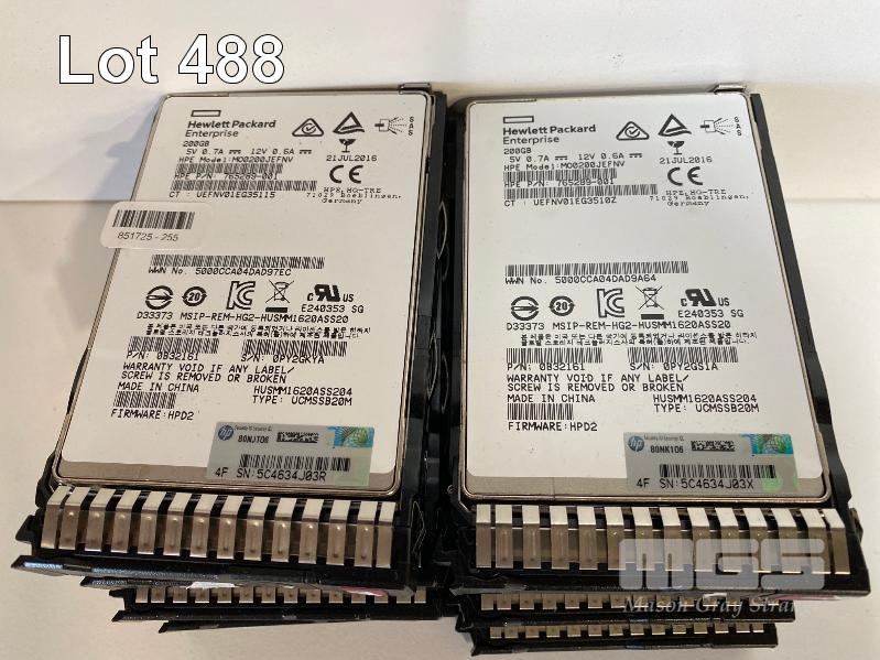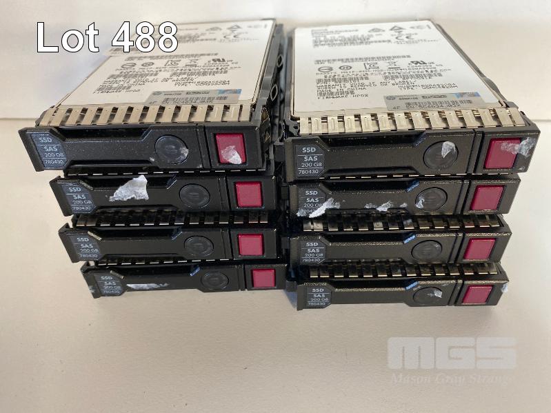 8 x HPE 200GB SSD HARD DRIVES, 2.5" WITH CADDIES