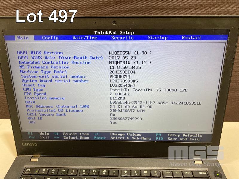 LAPTOP, LENOVO THINKPAD T470 (20HES0ET04), CORE i5 7300U (7TH GEN) @ 2.6GHz, 8GB DDR4 RAM, 256GB NVMe M.2 SSD, 14" WIDESCREEN (1366x768), INTEL HD VIDEO, Wi-Fi, BLUETOOTH, WINDOWS 10 PRO INSTALLED & POWER SUPPLY S/N:PF0UREYQ