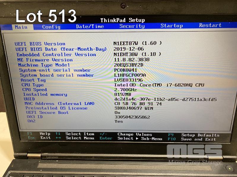 LAPTOP, LENOVO THINKPAD P50 MOBILE WORKSTATION (20EQS3BY2D), CORE i7 6820HQ (6TH GEN) @ 2.7GHz, 8GB DDR4 RAM, 512GB SSD, 15.6" WIDESCREEN (1920x1080), 4GB NVIDIA QUADRO M2000M VIDEO, Wi-Fi, BLUETOOTH, WINDOWS 10 PRO INSTALLED & POWER SUPPLY (NOTE: DAMAGE TO CASING LHS) S/N:PC0K0W41