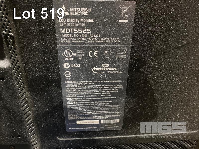 MONITOR, MITSUBISHI MDT552S 55" COMMERCIAL SLIM LED-BL LCD DISPLAY, 1920x1080, HDMI INPUTS (NO REMOTE, NO STAND) S/N:37201569CW
