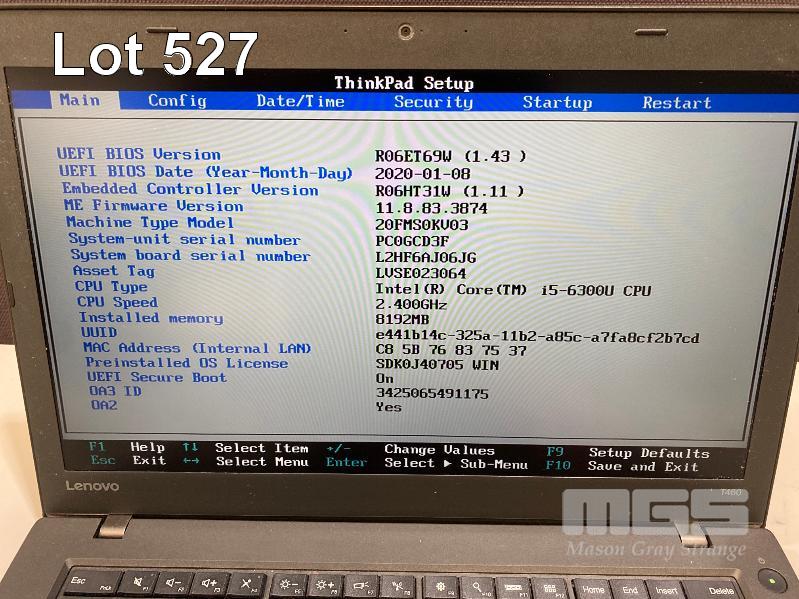 LAPTOP, LENOVO THINKPAD T460 (20FMS0KV03), CORE i5 6300U (6TH GEN) @ 2.4GHz, 8GB DDR3 RAM, 275GB SSD, 14" WIDESCREEN (1366x768), INTEL HD VIDEO, Wi-Fi, BLUETOOTH, WINDOWS 10 PRO INSTALLED & POWER SUPPLY S/N:PC0GCD3F