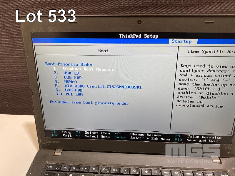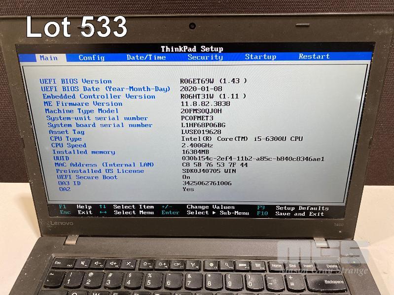 LAPTOP, LENOVO THINKPAD T460 (20FMS0QJ0H), CORE i5 6300U (6TH GEN) @ 2.4GHz, 16GB DDR3 RAM, 525GB SSD, 14" WIDESCREEN (1920x1080), INTEL HD VIDEO, Wi-Fi, BLUETOOTH, WINDOWS 10 PRO INSTALLED & POWER SUPPLY (NOTE: WHITE SPOT SCREEN BLEMISHES) S/N:PC0FMET3