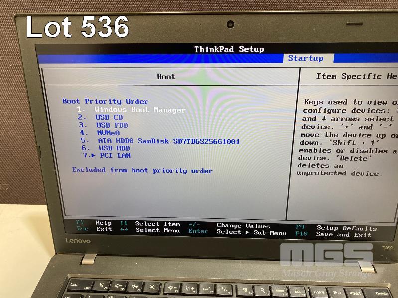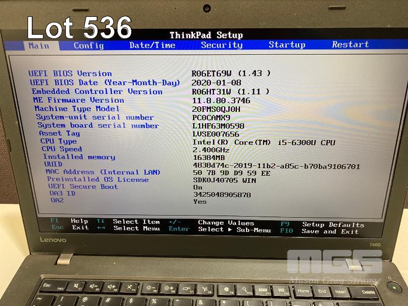 LAPTOP, LENOVO THINKPAD T460 (20FMS0QJ0H), CORE i5 6300U (6TH GEN) @ 2.4GHz, 16GB DDR3 RAM, 256GB SSD, 14" WIDESCREEN (1920x1080), INTEL HD VIDEO, Wi-Fi, BLUETOOTH, WINDOWS 10 PRO INSTALLED & POWER SUPPLY (NOTE: MARKS ON SCREEN) S/N:PC0CAMX9