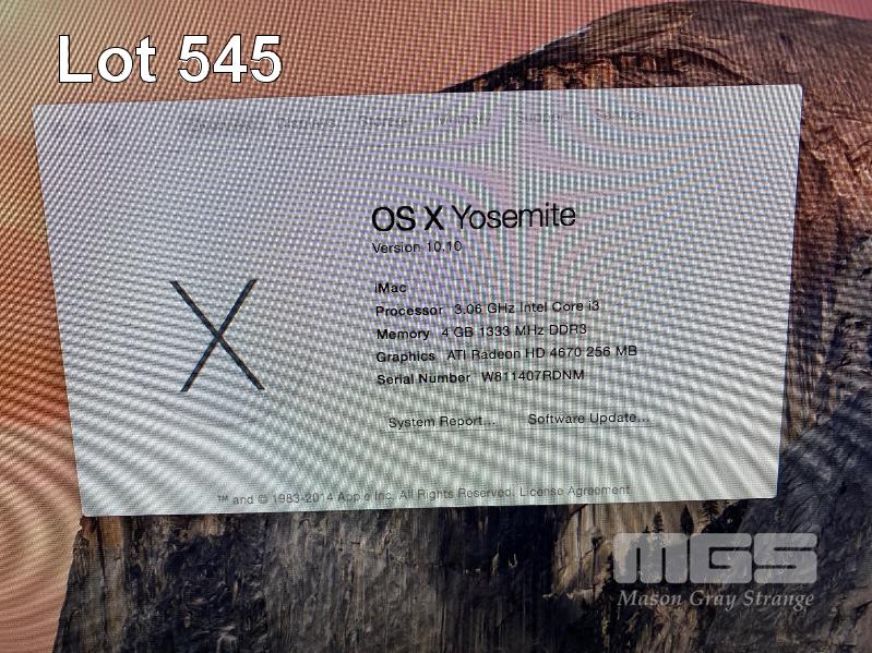 APPLE iMAC (A1311), CORE i3 540 @ 3.06GHz, 4GB DDR3 RAM, 500GB SATA HDD, DVD-RW, BUILT-IN 21.5" DISPLAY (1920x1080), 256MB ATI RADEON HD 4670 VIDEO, Wi-Fi, MAC OS 10.10 INSTALLED (NO KEYBOARD, NO MOUSE, NO APPLE POWER CORD) S/N:W811407RDNM