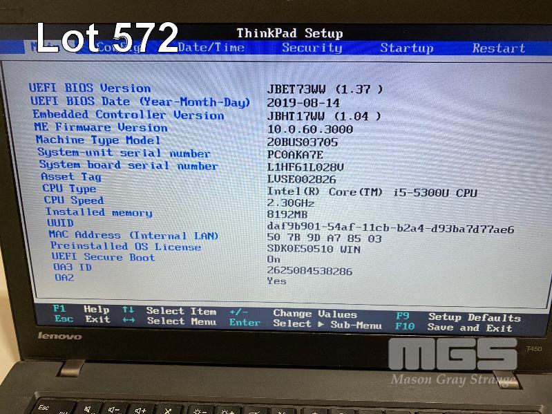LAPTOP, LENOVO THINKPAD T450 (20BUS03705), CORE i5 5300U (5TH GEN) @ 2.3GHz, 8GB DDR3 RAM, 256GB SSD, 14" WIDESCREEN (1366x768), INTEL HD VIDEO, Wi-Fi, BLUETOOTH, WINDOWS 10 PRO INSTALLED & POWER SUPPLY S/N:PC0AKA7E