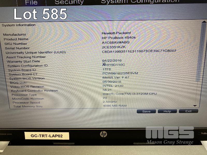 LAPTOP, HP PROBOOK 4540s (A1C68AV), CORE i3 3120M (3RD GEN) @ 2.5GHz, 4GB DDR3 RAM, 320GB SATA HDD, DVD-RW, 15.6" WIDESCREEN (1366x768), INTEL HD VIDEO, Wi-Fi, BLUETOOTH, WINDOWS 7 HOME PREMIUM INSTALLED W/ LICENSE & POWER SUPPLY S/N:2CE3351KZK