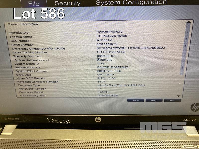 LAPTOP, HP PROBOOK 4540s (A1C68AV), CORE i3 3120M (3RD GEN) @ 2.5GHz, 4GB DDR3 RAM, 320GB SATA HDD, DVD-RW, 15.6" WIDESCREEN (1366x768), INTEL HD VIDEO, Wi-Fi, BLUETOOTH, WINDOWS 7 HOME PREMIUM INSTALLED W/ LICENSE & POWER SUPPLY S/N:2CE3351KZJ