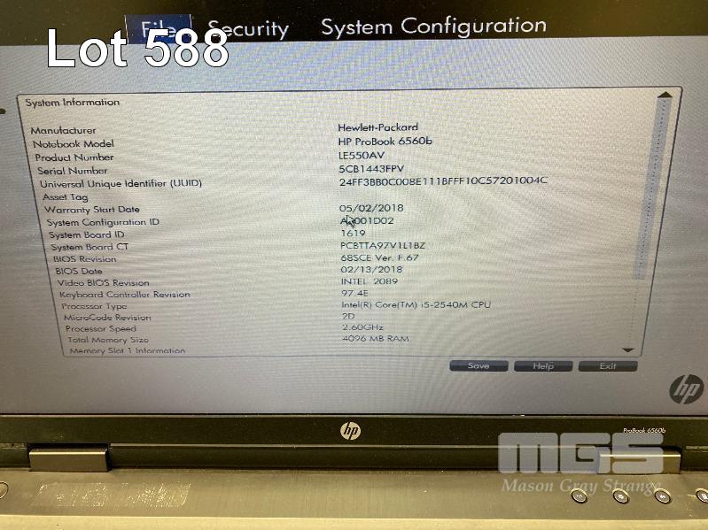 LAPTOP, HP PROBOOK 6560b (LE550AV), CORE i5 2540M (2ND GEN) @ 2.6GHz, 4GB DDR3 RAM, 250GB SATA HDD, DVD-RW, 15.6" WIDESCREEN (1366x768), INTEL HD VIDEO, Wi-Fi, BLUETOOTH, WINDOWS 7 PRO INSTALLED W/ LICENSE & POWER SUPPLY (NOTE: DAMAGE TO CASING, SCRATCH ON SCREEN) S/N:5CB1443FPV