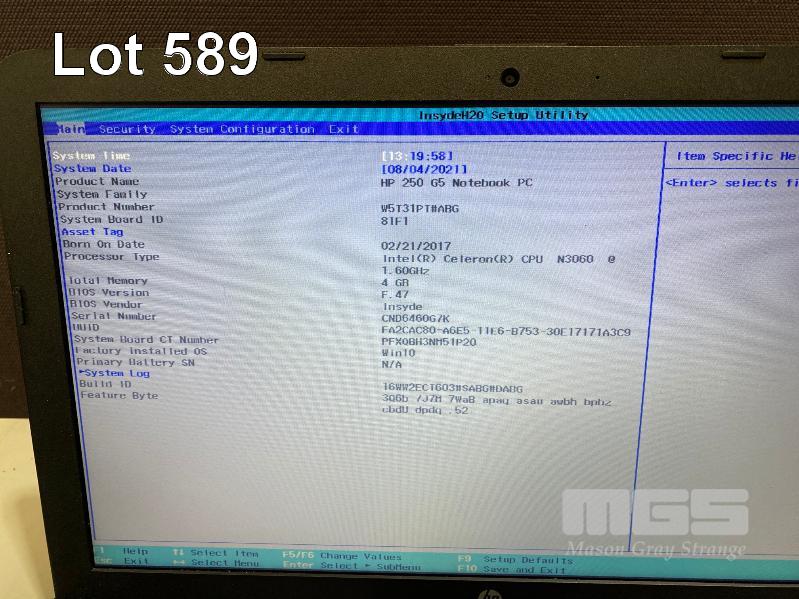 LAPTOP, HP 250 G5, CELERON N3060 @ 1.6GHz, 4GB DDR3 RAM, 250GB SATA HDD, DVD-RW, 15.6" WIDESCREEN (1366x768), INTEL HD VIDEO, Wi-Fi, BLUETOOTH, WINDOWS 10 HOME INSTALLED (NO POWER SUPPLY) (NOTE: BATTERY NOT CHARGING) S/N:CND6460G7K