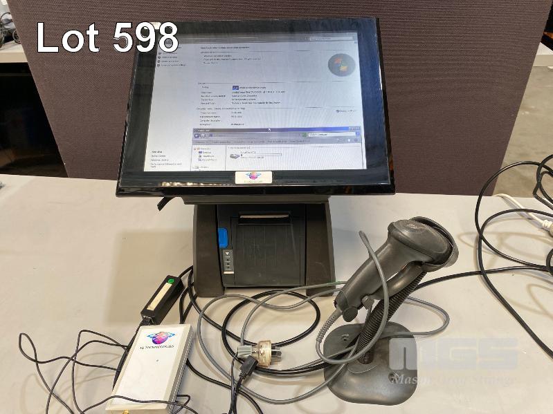 POS SYSTEM INC. SENOR 15" TOUCH SCREEN TERMINAL, MODEL CS POS 250, ATOM D2550 @ 1.86GHz, 4GB RAM, 320GB HDD, WINDOWS EMBEDDED STANDARD 7 INSTALLED, DOCKET PRINTER, HANDHELD USB BARCODE SCANNER, RFID READER (CABLE CUT) S/N:K15500762