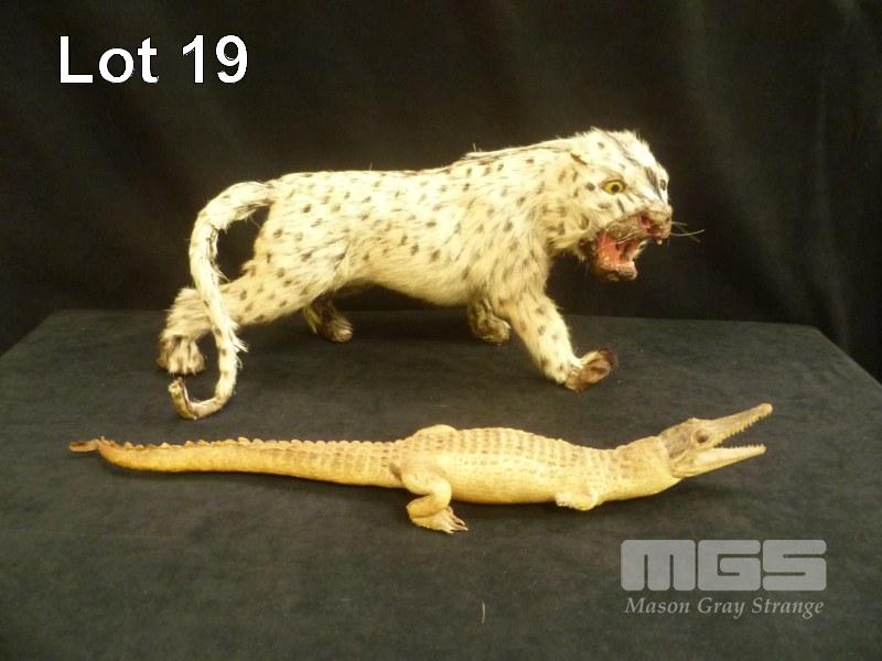 TAXIDERMY FELINE & BABY FRESH WATER CROCODILE (BOTH REQUIRE REPAIR)