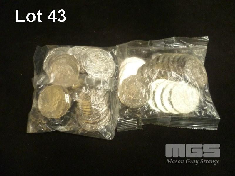 2 X SEALED BAGS OF 20, AUSTRALIA, 2019, 50c COINS, UNC