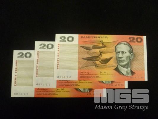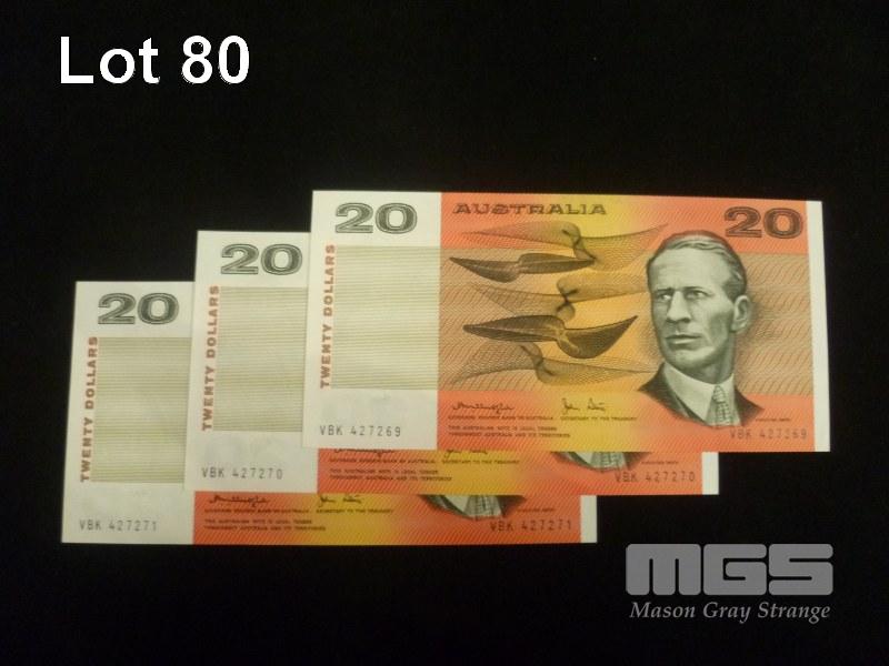 1979 3 x $20.00 NOTES "GOTHIC" CONSECUTIVE KNIGHTS STONE UNC