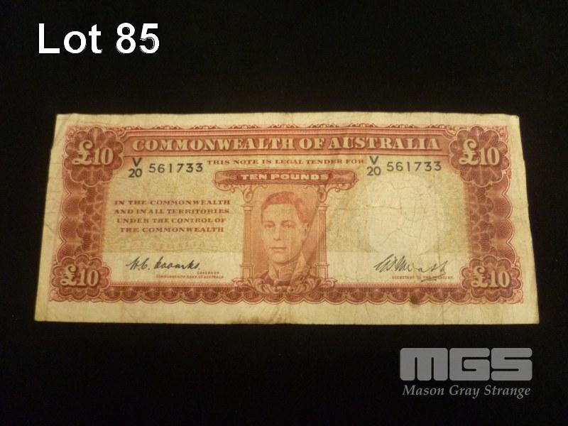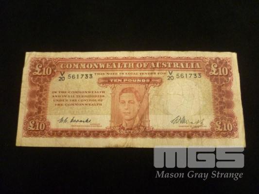 COMMONWEALTH OF AUSTRALIA 10 POUND BANK NOTE COOMBS/WATTS, V20 PREFIX