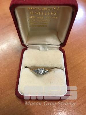 DIAMOND ENGAGEMENT RING, GOLD & PLATINUM WITH DIAMOND SETTING & 2 X DIAMOND CHIPS TO EACH SIDE, 14CT 2.4 GMS