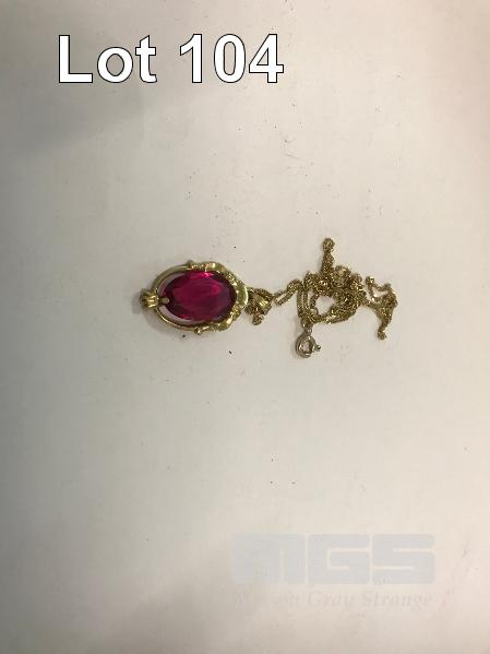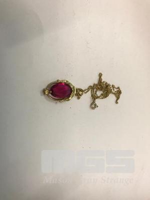 GOLD CHAIN WITH PINK STONE PENDANT, MARKED 9CT, 3.5 GMS TOTAL WEIGHT